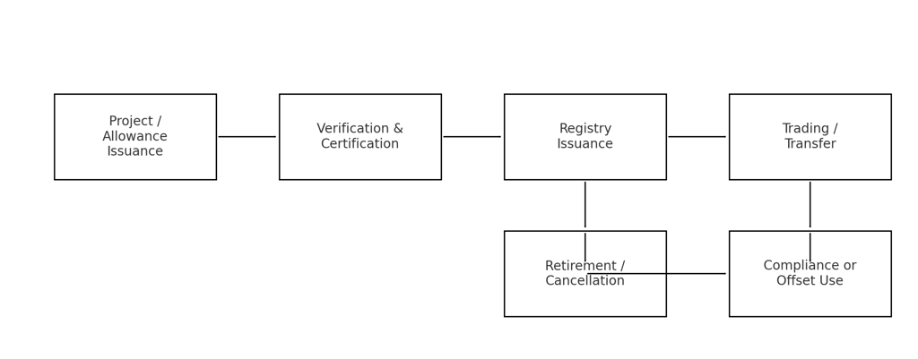 通過第三方查證後,註冊機構在電子帳簿發行碳權 (序號 + 計量單位)。