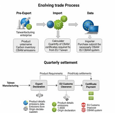 出口前 → 企業需完成產品碳盤查 → 填報 CBAM 排放申報 →